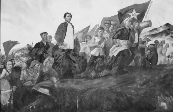 油画《向井冈山进军》。
