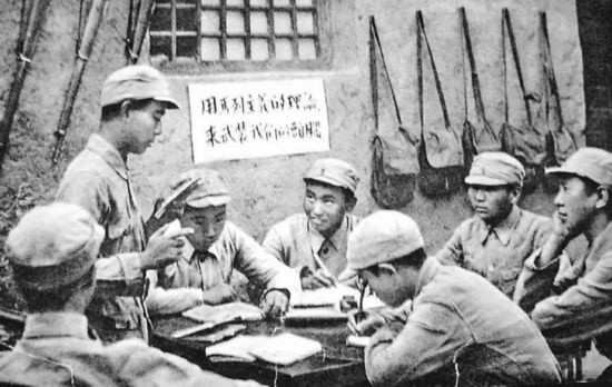 延安时期,战士们在集中学习。