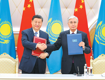 习近平指出,去年,我和托卡耶夫总统在西安和北京两次会晤,就中哈关系发展作出新部署新规划,引领中哈关系“黄金30年”快速发展。中方始终从战略高度和长远角度看待中哈关系,将哈萨克斯坦视为中国周边外交的优先方向和在中亚的重要合作伙伴,中方维护好、发展好中哈关系的意愿和决心坚定不移,不会因一时一事或国际风云变幻而改变。中国将永远是哈方可以倚重和信赖的好邻居好伙伴。中方愿同哈方继续加强天然气等传统能源合作,拓展光伏、风电等新能源合作,支持更多中国企业赴哈萨克斯坦投资,助力哈方将资源优势转换为发展能力,实现绿色、低碳、可持续发展。