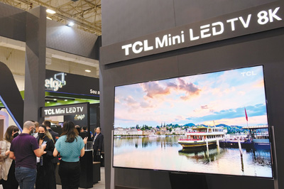 2022年7月,在巴西圣保罗国际消费类电子及家用电器产品展览会上,TCL公司展出电视产品。 |